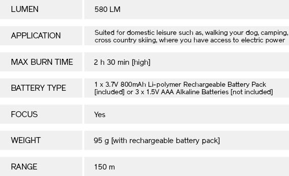 Den gir bra lys og veier lite - perfekt for aktiviteter i mørket, enten ved løping, telttur eller skitrening.