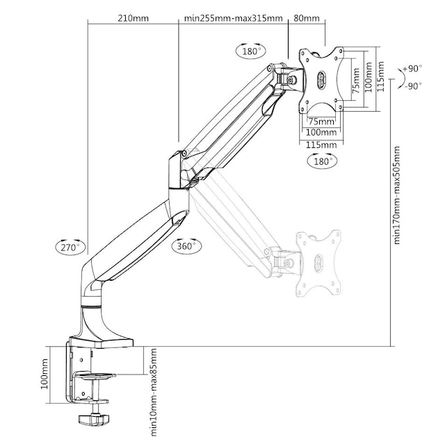 iiglo Mantis lar deg feste én enkelt skjerm på 13–34" for å frigjøre plass på skrivebordet. Den robuste gassfjæren og den roterbare VESA-platen gir flere visningsmuligheter.