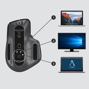 Koble til inntil tre enheter slik du vil via Bluetooth® eller den medfølgende USB-mottakeren i Windows, Mac eller Linux.