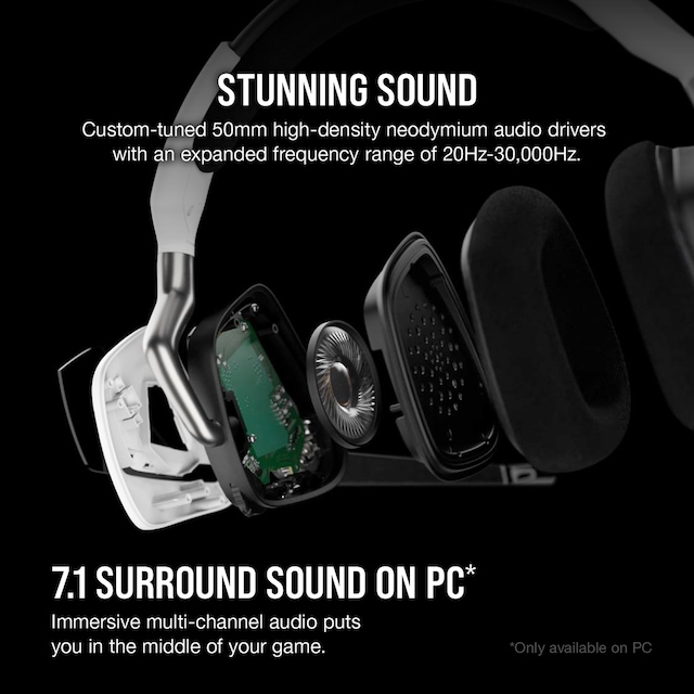 Hør alt i 7.1-surroundlyd fra lette fottrinn til dundrende eksplosjoner takket være førsteklasses, fininnstilte 50 mm lyddrivere i neodym av høy tetthet med et utvidet frekvensområde på 20–30000 Hz.
