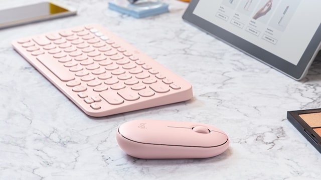 Velg Logitech Pebble M350 i off-white, grafitt, lyserosa, så du kan velge en mus som matcher resten av tilbehøret.
