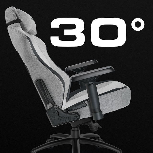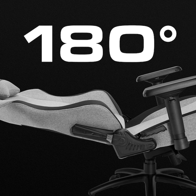 Den nye gamingstolen har en trinnløs ryggstøtte; Velg din ideelle ryggstilling og lås ryggstøtten på plass. Hvis du har uflaks og må stå over en runde, kan stolen vippes 180 grader for en lur. Lad batteriene og vær klar til å knuse konkurrentene i neste runde.