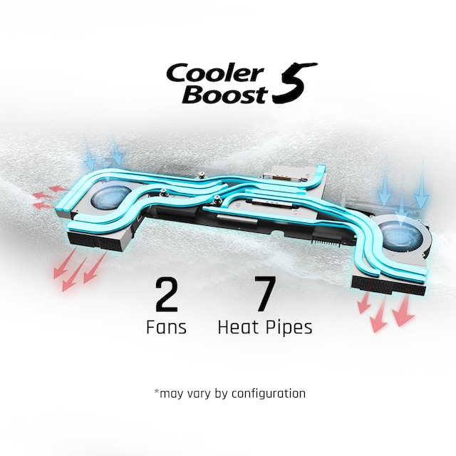 Egne kjøleløsninger for både CPU-en og GPU-en med totalt 7 varmerør sikrer maksimal ytelse under ekstrem gaming.