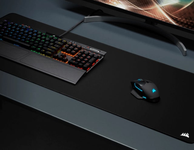 Spill trygt med CORSAIR MM350 PRO Premium sprutsikker musematte i tekstil for gaming – Extended XL, som gir plass til musen, tastaturet og mer på en massiv overflate på 930 x 400 mm med et sprutsikkert belegg