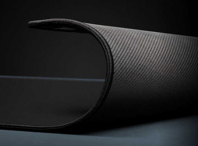 En hyperrask, mikrovevet tekstiloverflate med forbedret glid skaper en tett overflate for en raskere og jevnere glid for musen.