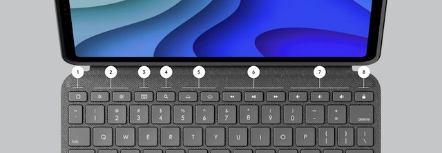 Du trenger ikke lenger jakte rundt på skjermen eller i menyer for å utføre enkle handlinger – Folio Touch har en full rad med iPadOS hurtigtaster for ettrykkstilgang til ofte brukte funksjoner volum og mediakontrollere, lysstyrke osv.