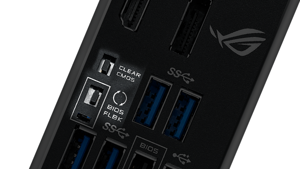 BIOS FlashBack er den enkleste og sikreste måten å oppdatere BIOS på. Bare legg (UEFI) BIOS-filen på en FAT32-formatert USB-pinne, koble den til USB BIOS FlashBack-porten og trykk på knappen. Oppdateringer kan til og med utføres uten å ha noe minne eller CPU installert.