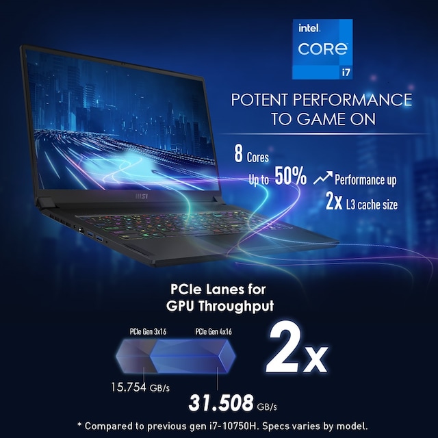 *Sammenlignet med forrige generasjons i7-10750H. Spesifikasjoner varierer etter modell.