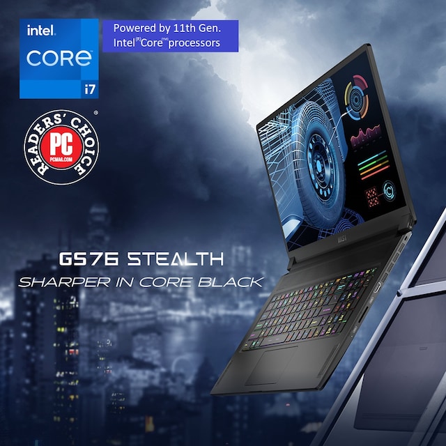 Fly raskt over hele byen med GS76 Stealth og dens skarpe og elegante svarte design. GS76 Stealth er utstyrt med den nyeste 11. generasjons Intel® Core™ i7-prosessoren og NVIDIA® GeForce RTX™ 3070-grafikk, og er ekstremt tynn og lett samtidig som den har verdens høyeste batterikapasitet på 99,9 WHr og den nyeste Wi-Fi 6E. Profesjonell om dagen, hardcore-gamer om natten, inkarnert som kongen av metropolen med GS76 Stealth.