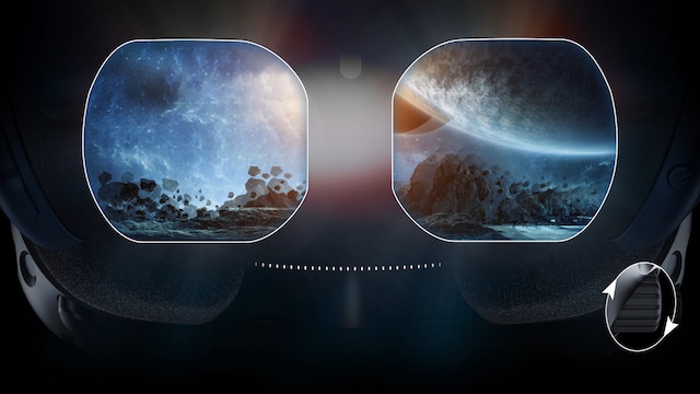 Justerbar avstand mellom pupillene (IPD*) for optimal visningskomfort. Finn den optimale innstillingen ved hjelp av dreieknotten mens du bruker headsetet.