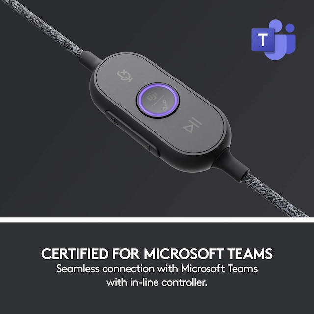 Zone Wired er holdbart og pålitelig, og gjør det enkelt å chatte, starte eller bli med i et Teams-møte med ett enkelt trykk på den dedikerte knappen på den innebygde kontrolleren. De intuitive kontrollene gir også mulighet for å dempe, justere volumet, svare/avslutte/avvise samtaler og spille av / sette på pause musikk, pluss visuelle Teams-varsler, alt rett ved fingerspissene.