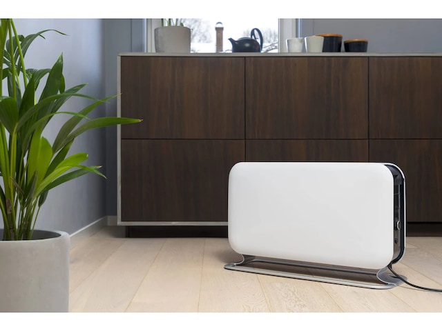 Konveksjonsvarmeren CO2200LEDMAX har vakre avrundede hjørner og et lett buet panel. Den diskrete formen og fotvinkelen får det til å virke som om ovnen flyter på gulvet. En komplett stilig varmeapparat!