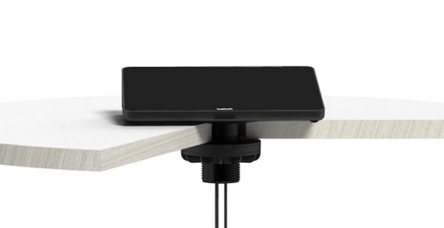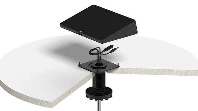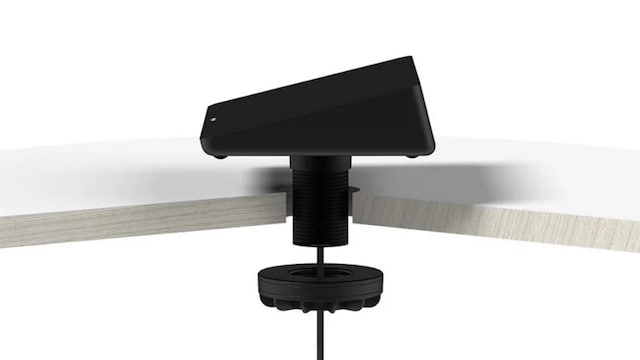 Bordfestet er designet for møteromsbord med gjennomføringshull, og sikrer at berøringskontrolleren sitter på plass samtidig som den bevarer en lav profil. Tap-bordfestet bevarer en ren bordplate ved å føre kablene gjennom gjennomføringshullet, og kan dreies 180° for praktisk betjening fra begge sider av bordet.