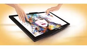 En robust antirefleksskjerm for fleksibel bruk hvor som helst, med tilpassbart stativ. AIT (Advanced In-Cell Touch) gir et slankere utseende, overlegen følsomhet, rask respons samt enestående og klarere bildekvalitet.