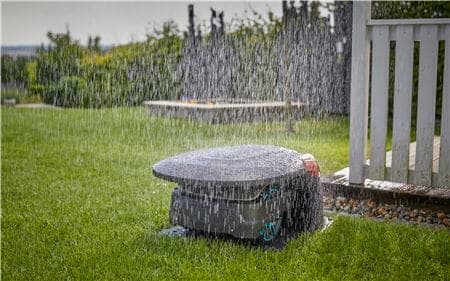 Den robuste plastgarasjen gir beskyttelse mot både sol og regn for robotgressklipperen og ladestasjonen. Det sammenleggbare taket gir enkel tilgang til betjeningspanelt, og innstillingene kan enkelt justeres.