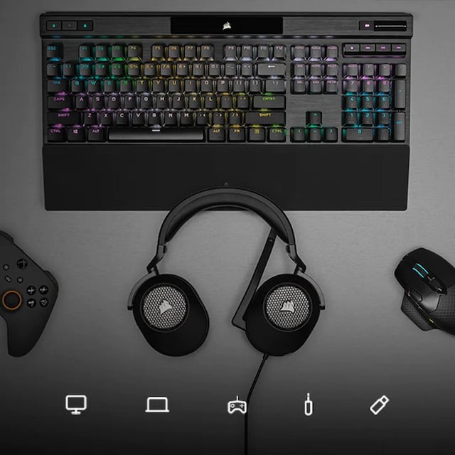 Bruk den inkluderte USB-adapteren til å bruke SoundID og Dolby Audio 7.1 surroundlyd og få tilgang til andre funksjoner via CORSAIR iCUE-programvaren på PC eller Mac. Alternativt kan du bruke 3,5 mm kontakt til å enkelt plugge til PC, konsoll eller mobilenheter for å raskt komme i gang med spillet.