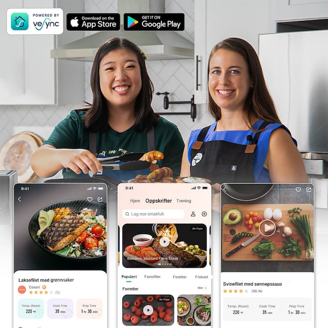 • VeSync-app for tilpassede oppskrifter og smartfunksjoner