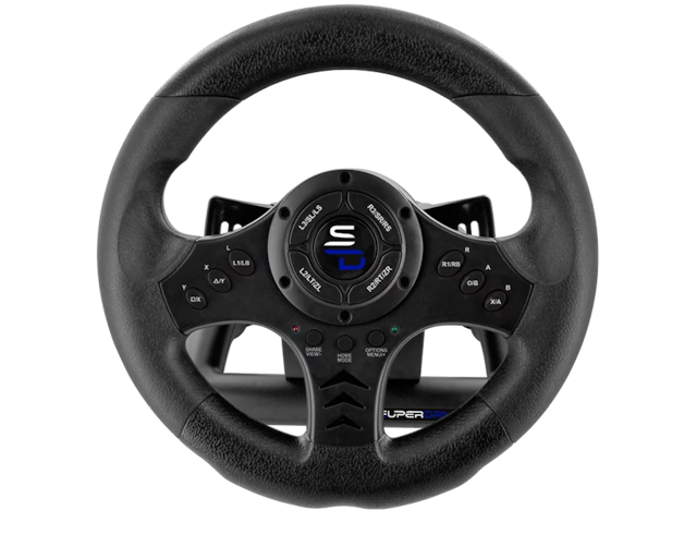 SV450-rattet tilbyr deg et 24 cm hjul med en 180° rotasjonsvinkel som tilpasser seg kjørevanene dine, fullt programmerbart med 3 følsomhetsnivåer som kan justeres direkte fra rattet.