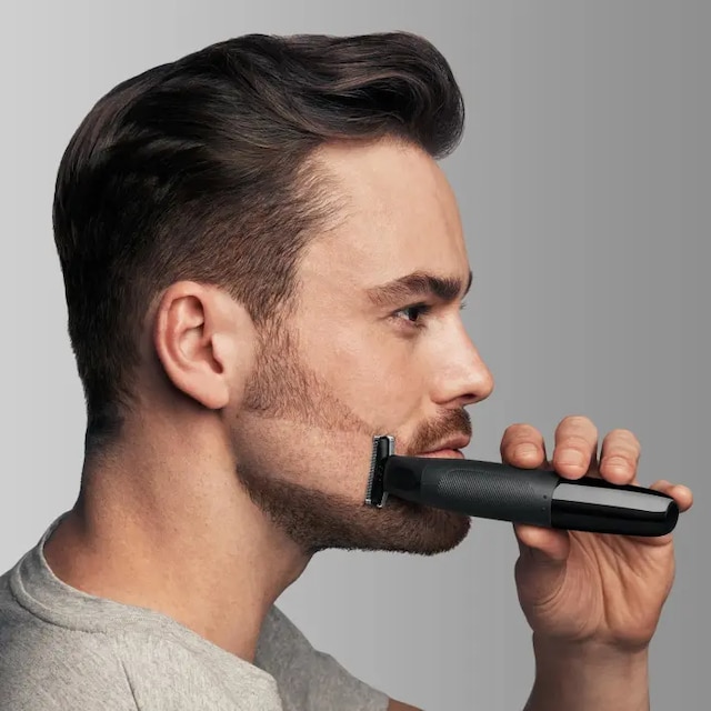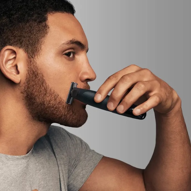 Designet for presisjon og kontroll: Klipp både opp og ned med toveiskammen. Sikker barbering vått eller tørt takket være det gummibelagte, sklisikre håndtaket.