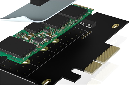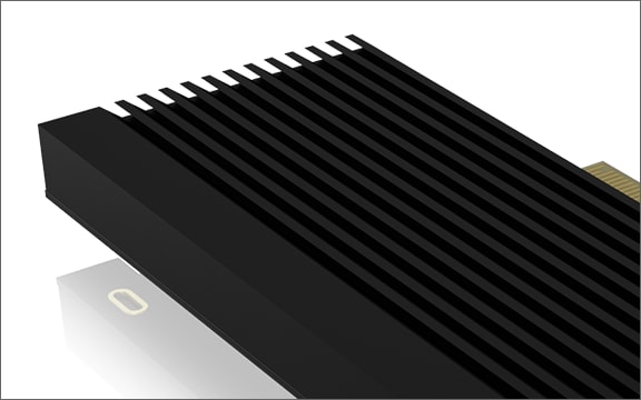 Selv med den høyeste belastningen forblir SSD-en alltid kjølig. Den store, solide kjøleribben i aluminium i den innovative kjøleribbedesignen sikrer tilstrekkelig varmespredning for å holde SSD-en i gang stabilt og effektivt. I tillegg leveres utvidelseskortet med kjøleputer som brukes på M.2 SSD.