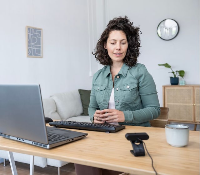 Få gleden av full 1080p-oppløsning, med et glasslinse med fast fokus som sikrer at du alltid er i sentrum for oppmerksomheten. I mellomtiden viser automatisk hvitbalanse og lyskorreksjon alltid deg (og rommet ditt) sanne farger.