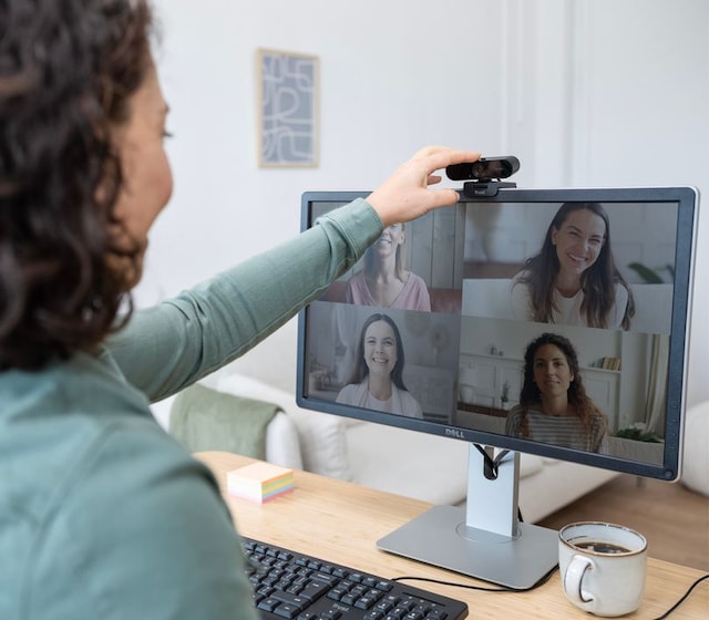 Bare koble til og begynn å ta opp – ved hjelp av det medfølgende universalstativet som passer for både skjermer og skrivebordsoverflater.