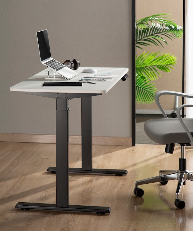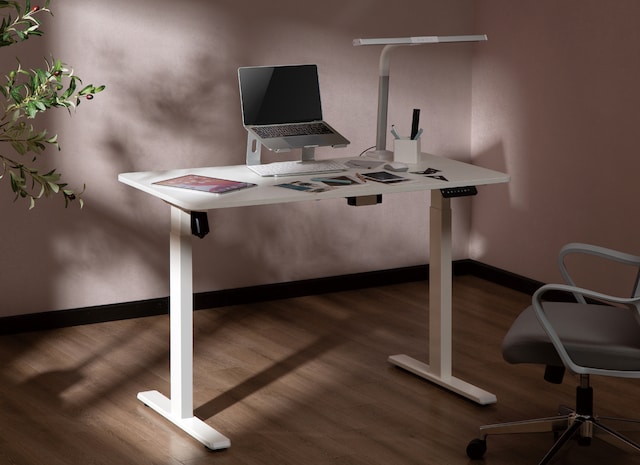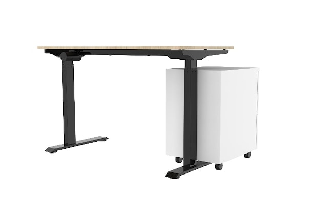 Åpen design: God plass under skrivebordet også i senket posisjon.