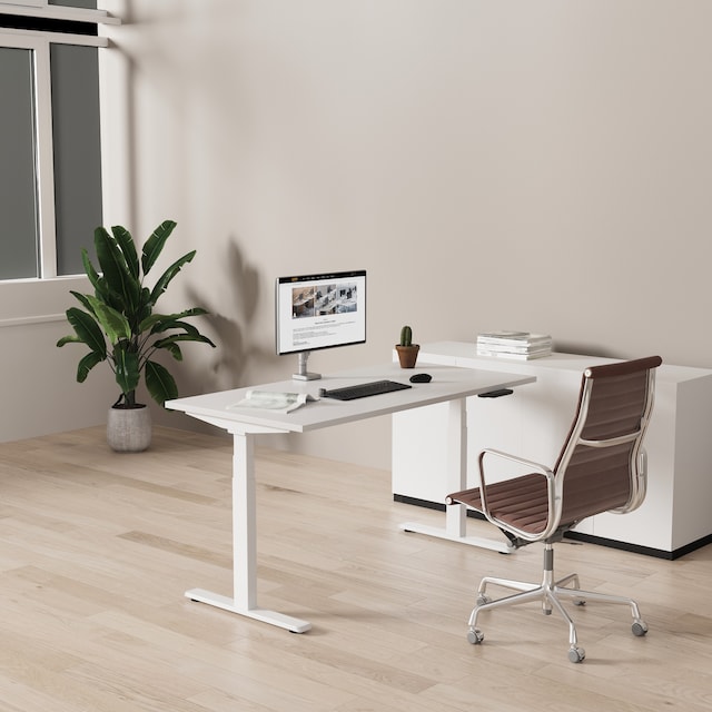 Åpen design: God plass under skrivebordet også i senket posisjon.