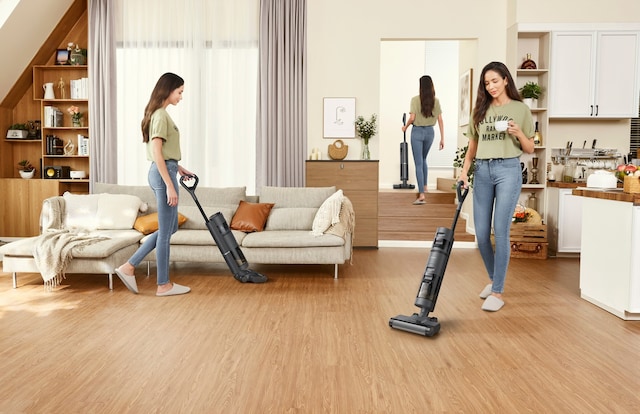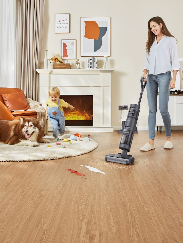 Effektiviser tiden din ved å støvsuge og tørke alle de harde gulvene i hjemmet ditt samtidig med Dreames H12 Core. Denne trådløse 2-i-1 stavstøvsugeren takler alt fra støv til våte flekker og selv de mest gjenstridige inngrodde merkene. Den er utstyrt med en avansert børsteløs motor drevet av seks sterke 4000mAh-batterier, som muliggjør kontinuerlig rengjøring i opptil 25 minutter. Takket være den kraftige motoren snurrer børstevalsen med 180 rpm for å skrubbe bort flekker grundig. Den integrerte børsteskrapen hjelper til med å rense børsterullen fra hår og skitt, mens det avanserte vannsirkulasjonssystemet tilbyr alt-i-ett-rengjøring, slik at du kan støvsuge og moppe samtidig. Alt dette er designet for å forenkle rengjøringsprosessen og for å gjøre den mer effektiv.