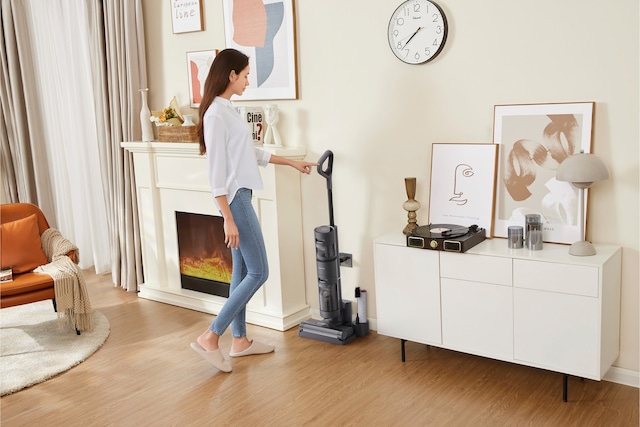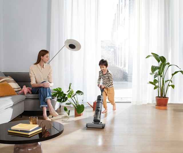H12 Core er lett og lett å manøvrere, og tar sikte på å skape en sømløs rengjøringsopplevelse. Denne 2-i-1 stavstøvsugeren er bemerkelsesverdig enkel å skyve og trekke langs de harde gulvene i hjemmet ditt. Den er utstyrt med to store bakhjul, og takket være den motordrevne børsterullen som genererer trekkraft fremover får du hjelp til å skyve stavstøvsugeren under rengjøring. Børsterullens munnstykke er designet for jevn rotasjon og manøvrerbarhet rundt møbler.