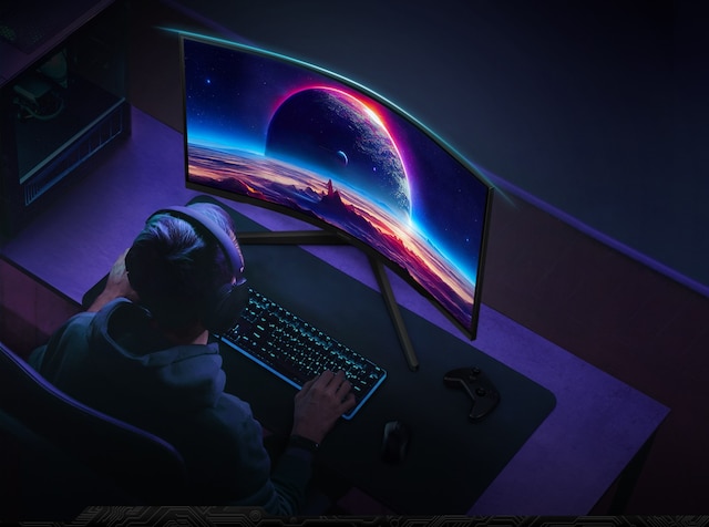 Livfulle scener omgir deg enda tettere. Opplev neste nivå av gaming som får hjertet til å slå raskere og overgår alt du tidligere har sett. 1000R-skjermen fyller sidesynet og plasserer deg i karakterens sko.