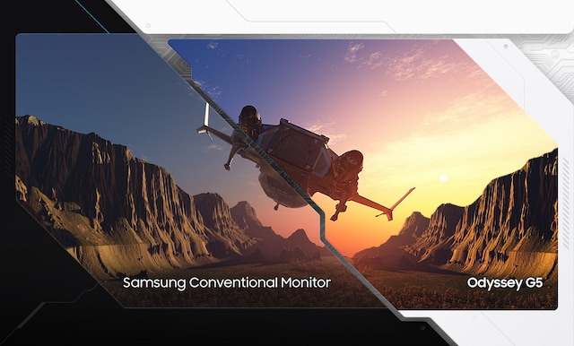 Spill enda lenger. Med Eye Saver Mode avgir skjermen mindre blått lys, slik at du anstrenger øynene mindre og kan spille over lengre perioder. Odyssey G5 reduserer dessuten irriterende og slitsom skjermflimmer, slik at du kan fokusere lenger med mindre distraksjon og belastning på øynene.