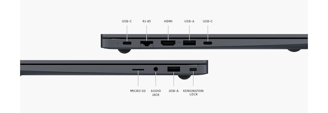 Med et stort utvalg av innebygde porter får du den allsidigheten du trenger – HDMI, to USB-A og to USB-C porter, microSD og til og med en RI45 port for rask tilkobling til LAN.