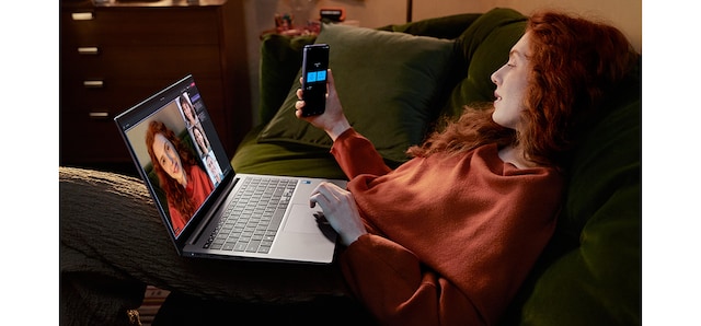 Bruker du Galaxy Buds trådløse ørepropper? Da er funksjonen Auto Switch* perfekt for deg. Om noen ringer deg mens du strømmer en film på din Galaxy Book4-laptop så kobler Auto Switch umiddelbart til telefonen så du kan svare.