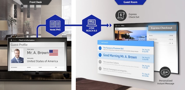 Samsungs innholdsplattform LYNK REACH 4.0 er kompatibel med eksisterende LAN, Wi-Fi og koaksiale infrastrukturer, og sentraliserer og effektiviserer det generelle vedlikeholdet for hotellet. Hotelledere kan nå løse problemer på tvers av enkeltskjermer eller grupper av skjermer før problemene eskalerer.