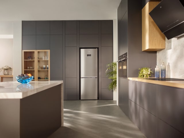 Noen kjøkken har en utfordrende layout, med hvitevarer på upraktiske steder. SmoothFit™-dørene går ikke forbi sidepanelet når de åpnes 90 grader, slik at kjøleskapet kan plasseres i et hjørne av rommet, eller ved siden av en vegg, uten at det blir vanskelig å bruke. Grønnsaksskuffene kommer helt ut også!