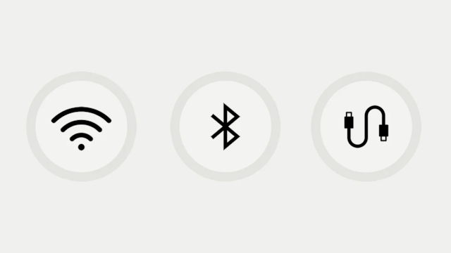 Koble til via Bluetooth® 5.0 (opptil tre enheter samtidig), 2,4 GHz eller kablet USB-C-kabel.