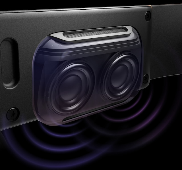 Å høre er å tro. Få 3D-lyd med høyttalere med to drivere med åpen bakside som minimerer lydlekkasje, støy- og ekkodempende mikrofoner og en 3,5 mm lydkontakt.