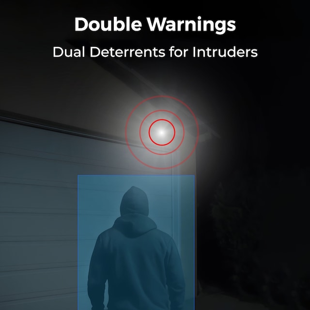 Når noe mistenkelig oppdages, vil søkelyset og sirenen utløses, og fungerer som effektive avskrekkende midler. Du kan også betjene dem manuelt via Reolink-appen eller Client.