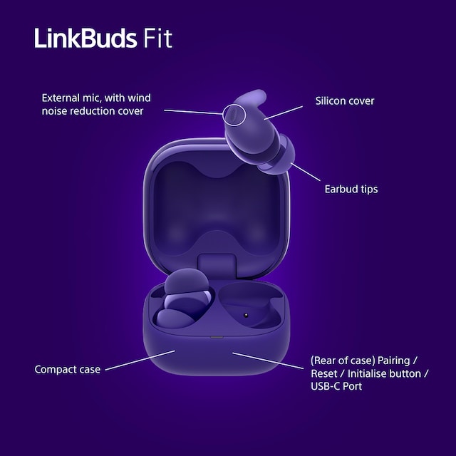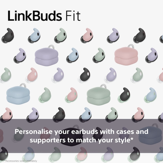 Nyt opptil 21 timers avspilling (5,5 timer fra øreproppene + 15,5 timer fra etuiet), samt rask lading. Velg mellom fire farger, og ytterligere fem farger på dekselet (selges separat). Koble til to Bluetooth-enheter samtidig med Multipoint Connection, og dra nytte av flere intuitive kontrollalternativer, inkludert trykk, stemmekommandoer eller appen på smarttelefonen din. LinkBuds Fit benytter resirkulert plast i både ørepropper og etui, og leveres i 100 % plastfri emballasje.
