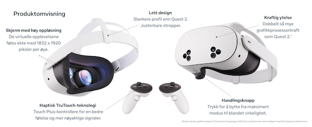 2 håndleddsstropper, 2 Touch Plus-kontrollere, 2 x AA-batterier, Strømadapter, Avstandsstykke for okular