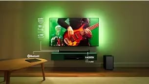 Kompatibilitet med DTS Virtual:X forvandler TV-lyden og gir deg en virtuell 3D-lydopplevelse, uansett hva som er på skjermen! Du trenger ikke ekstra høyttalere, og det fungerer i alle rom: Slå det på med fjernkontrollen for lydplanken eller fra Philips Home Entertainment-appen.