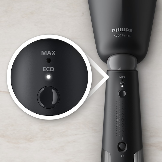 Philips håndholdte steamer 5000 Series fjerner skrukker fra alle plagg som kan strykes. Standardinnstillingen Eco er perfekt for å spare strøm, mens Max har et kraftigere dampnivå som takler krevende skrukker og stoff som bomull.