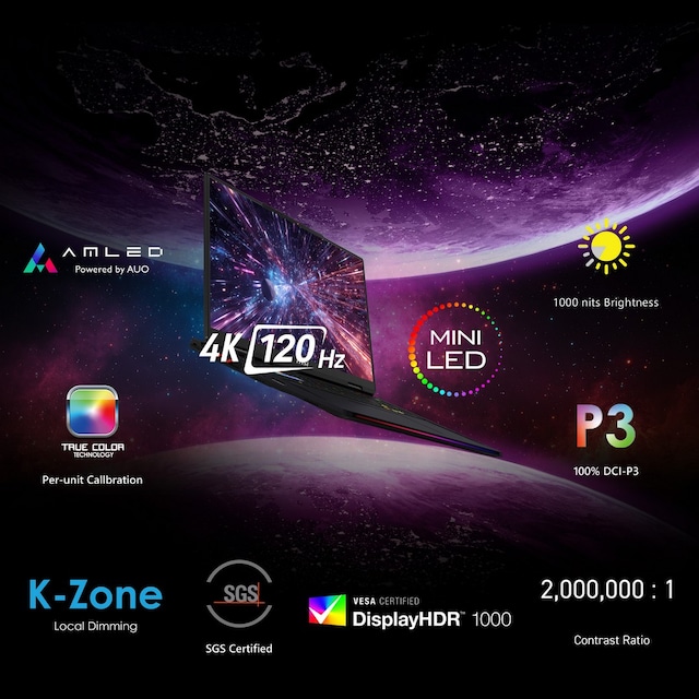 Nyt den uovertrufne realismen med Mini LED 4K-skjermens ultra-høye oppløsning, enten du er innendørs, utendørs eller under direkte sollys. Nyt den fremragende ytelsen til DisplayHDR 1000 og det levende fargespekteret. Hev spilleopplevelsen din med en rask 120Hz oppdateringsfrekvens. Fordyp deg i den sanne essensen av gaming.