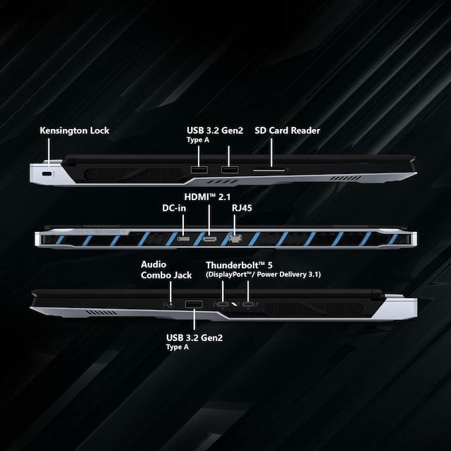 Titan 18 HX AI er utstyrt med et omfattende utvalg av I/O-porter, som gir desktop-nivå tilkobling for sømløs datatransmisjon og variert skjermutgang. Dette sikrer at spillere opplever maksimal enhetsfleksibilitet når de bruker bærbare PC-er.