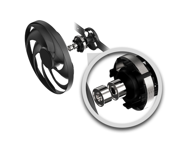 Denne har Dual Ball bearing-vifter, som har en levetid som er ca. 85% lengre enn sleeve-lager i våre tester. Forbedringene til viftebladene betyr at løsningen er opptil 10% stillere enn forrige generasjon.