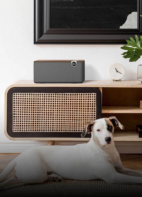 Med materialer av høy kvalitet som ekte trefinér og taktile brytere og knapper, kombinerer The One Plus bordhøyttaler Klipschs akustiske ekspertise og klassiske designarv med dagens nyeste teknologier.