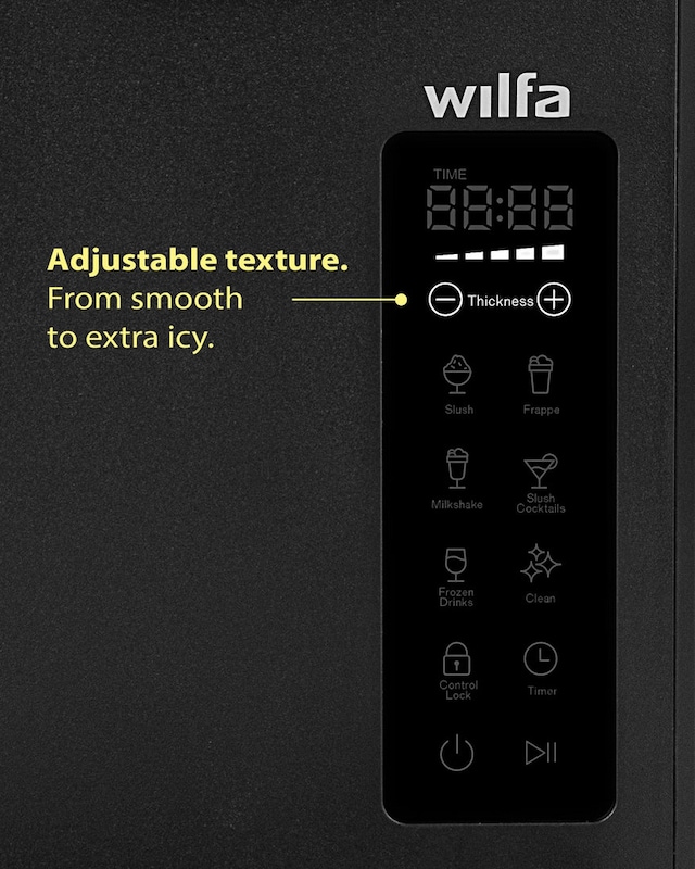 Bruk tykkelseskontrollen for å finjustere slushens konsistens – fra myk og glatt til ekstra isete.