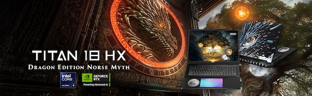 MSI's Titan 18 HX Dragon Edition Norse Myth redefinerer standarden for gaming-laptoper. Drevet av den nyeste Intel® Core™ Ultra 9 prosessoren 285HX og opp til NVIDIA® GeForce RTX™ 5090 Laptop GPU, leverer denne begrensede utgaven uslåelig ytelse med et fantastisk design inspirert av norrøn mytologi. Med intrikate graveringer og en dragesjel-plakett, er det mer enn bare en høyytelses-laptop—det er et ekte samlerobjekt. Bygget for de som krever legendarisk kraft og motstandskraft.