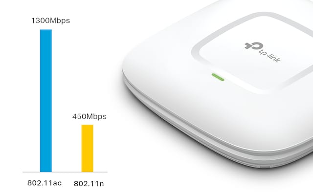 Den nyeste generasjonen av 802.11ac Wi-Fi kombinert med avansert 3x3 MIMO-teknologi sikrer førsteklasses Wi-Fi-hastigheter og dekning over trådløse bånd på 2,4 GHz og 5 GHz. EAP245 oppnår trådløse hastigheter på opptil 1,75 Gbps, med 1300 Mbps på 5 GHz-båndet og 450 Mbps på 2,4 GHz-båndet.
